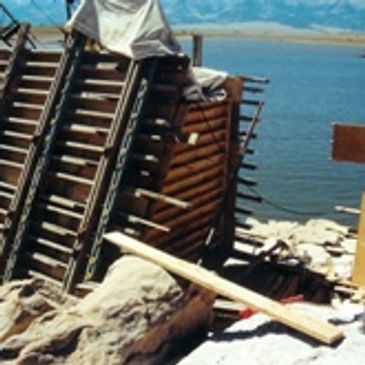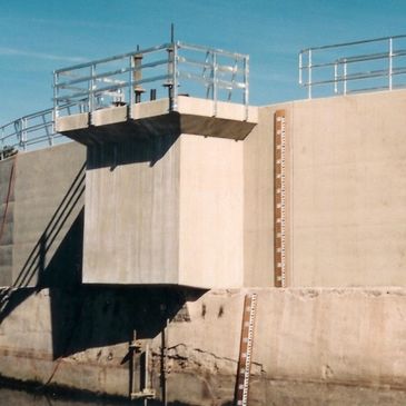 During the reconstruction of the dam, the contractor was adjusting the 36" headgate by lifting it with the backhoe on the barge and pulled it completely out of the guides. A plug was cast that would go in the lower end of the pipe and it was attached to a trackhoe and inserted into the pipe , kind of like the little Dutch boy with his finger in the dike. You can see the trackhoe at the base of the dam, it sat there for six weeks while a new headgate was cast and installed.